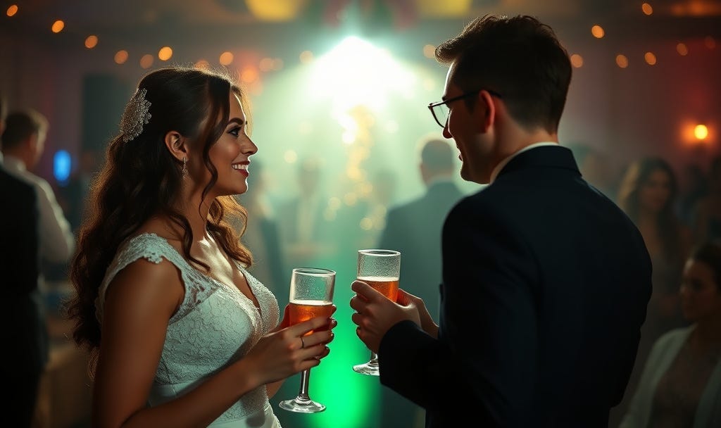 Ya no podía con más y se salía para marcharse cuando la vio. Ese cuello de la novia no se le podía escapar, lo tenía demasiado fácil porque ella había salido a respirar aire fresco y descansar un poco.